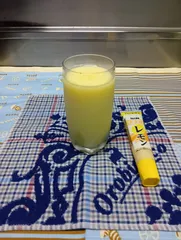 フルーツ牛乳 「フルーツ牛乳 協奏曲第2番 🐴イン短"調 作品目録33」満足するものが出来ました。【材料及び製品】🍎ジュース (Apple juice)🍊ジュース (Orange juice)🍍ジュース (Pineapple juice)🍋S&Bきざみレモン(