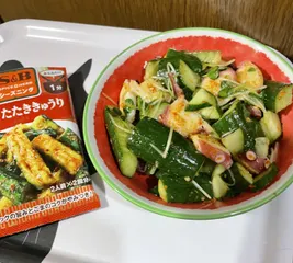 一皿いけちゃいます…韓国風たたききゅうり 韓国風たたききゅうり」のシーズニング! タコとカイワレも入れてみました。 これは、、、 一人で一皿いってしまいそうで怖いです😇 しっかりした味があとを引いて、止まらない♡ すごく美味しかったです(๑˃̵ᴗ˂̵)
