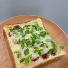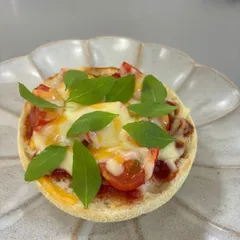トマトとチーズとトッピングバジル イングリッシュマフィンにケチャップとミニトマトとチーズをのっけてトースト。仕上げにトッピングバジル☆ 何度も何度も作ったお気に入りで、のっけるだけで素敵になるトッピングバジルが大活躍のトーストなんですが…ついに我が家のトッピングバジルがおしまいに。。涙 私が作った最後のトッピング