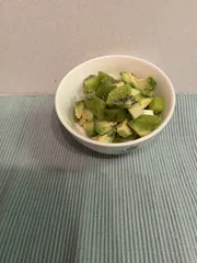 キウイ2 思っていたほど、柔らかくならず🥝アボカドとモッツァレラサラダのトッピングにしました。