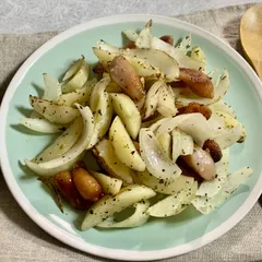 かぶとベーコンを交互に並べ、その上にチーズをかけてトースターで焼きました♪とろけるかぶとチーズにブラックペッパーがアクセントとなり、とってもおいしかったです♪ ごちそうさまでした。