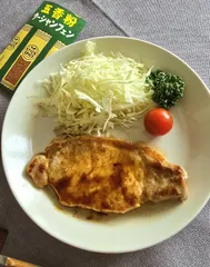 厚切り豚肉、トンテキのソースに、しょうがのみじん切りとニンニクのみじん切りを炒めて、ウスターソース、ケチャップ、みりん、砂糖で煮詰めてつくりました。