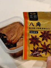NEW 八角で角煮を香り付け 角煮を作りました。テレビで角煮を作っていたのを見て、作りたくなったので、真似しながら作ってみました。豚肩ロースですが、焼いてからお湯で油を落とし、酒、しょうが、ネギ、おから、水を入れた圧力鍋で煮て。煮上がったお肉を、酒、みりん、水、八角で煮込んで出来上がり!八角の独特の香りが良いですよ。お肉も崩れる